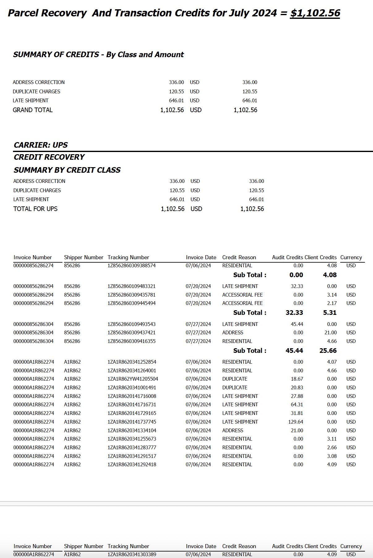Enter the amount of refunds and credits issued to you by your freight carrier last month divided by the total amount shipped. Please click here to view sample report.